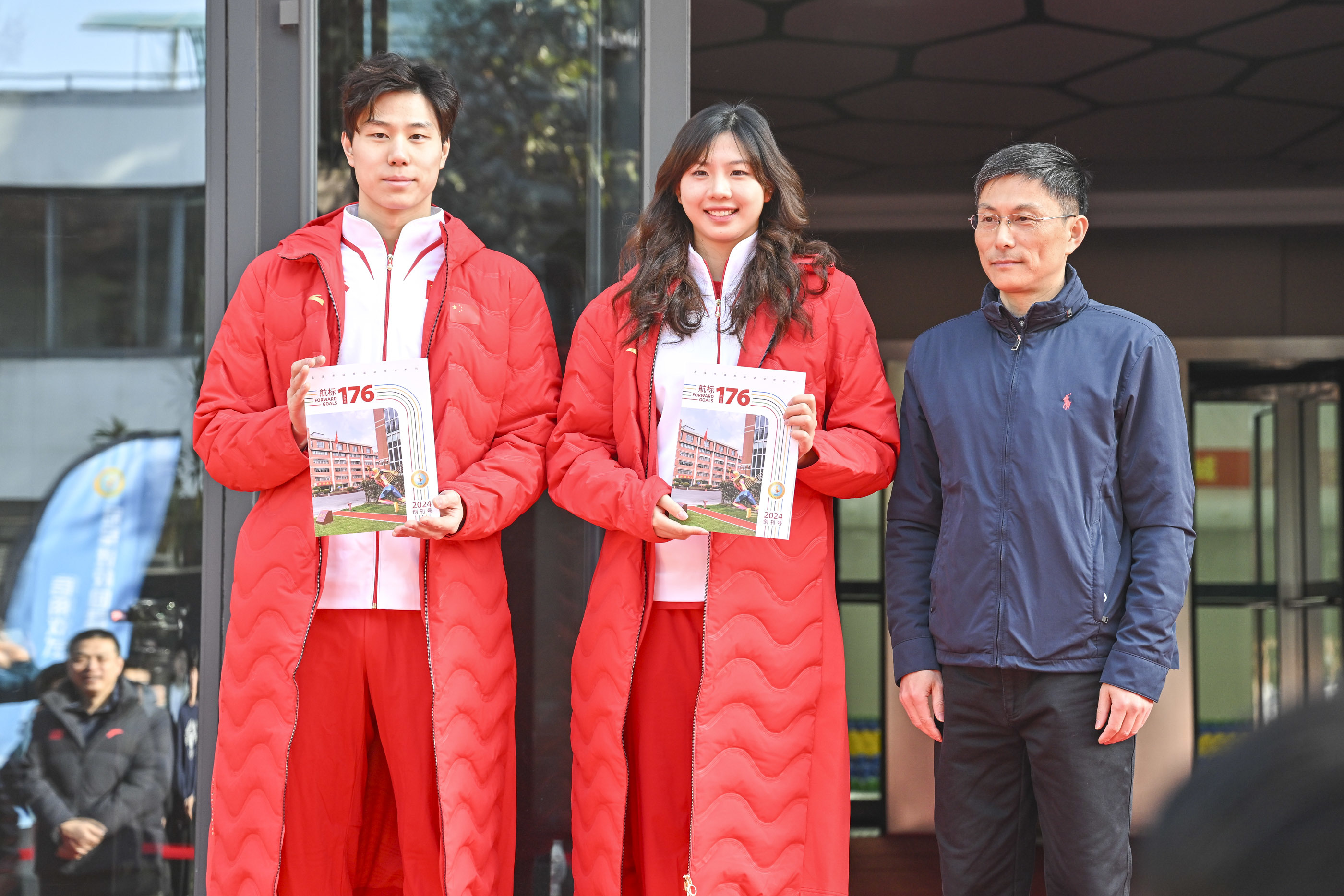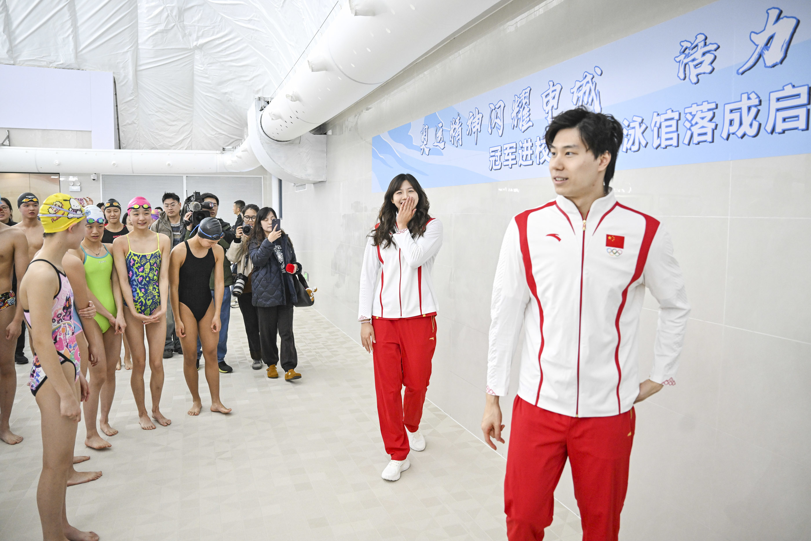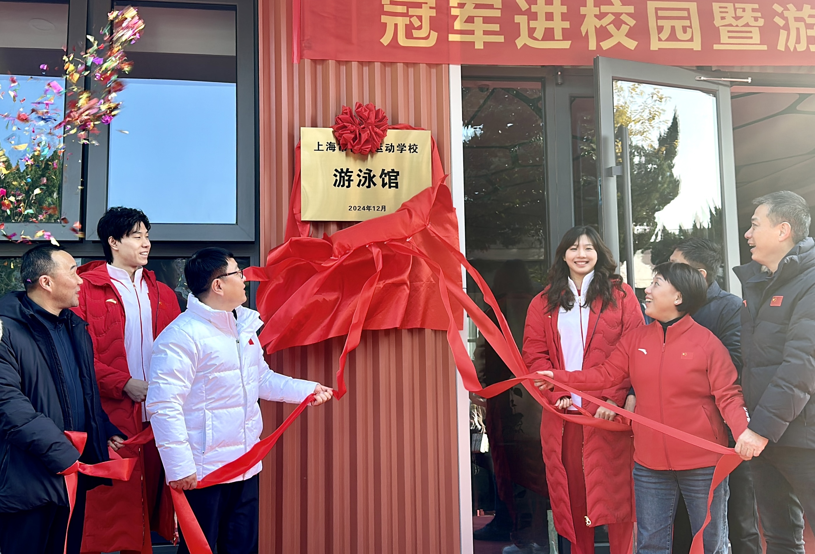 12月20日,“奥运精神闪耀申城 活力青春追逐梦想”冠军进校园暨游泳馆落成启用仪式在上海市体育运动学校举行。在刚刚结束的2024布达佩斯短池游泳世锦赛摘金夺银的世界“蛙王”覃海洋、“蛙后”唐钱婷和中国游泳队奥运冠军教练崔登荣一同出现在校园,为新落成的市体校游泳馆揭牌。