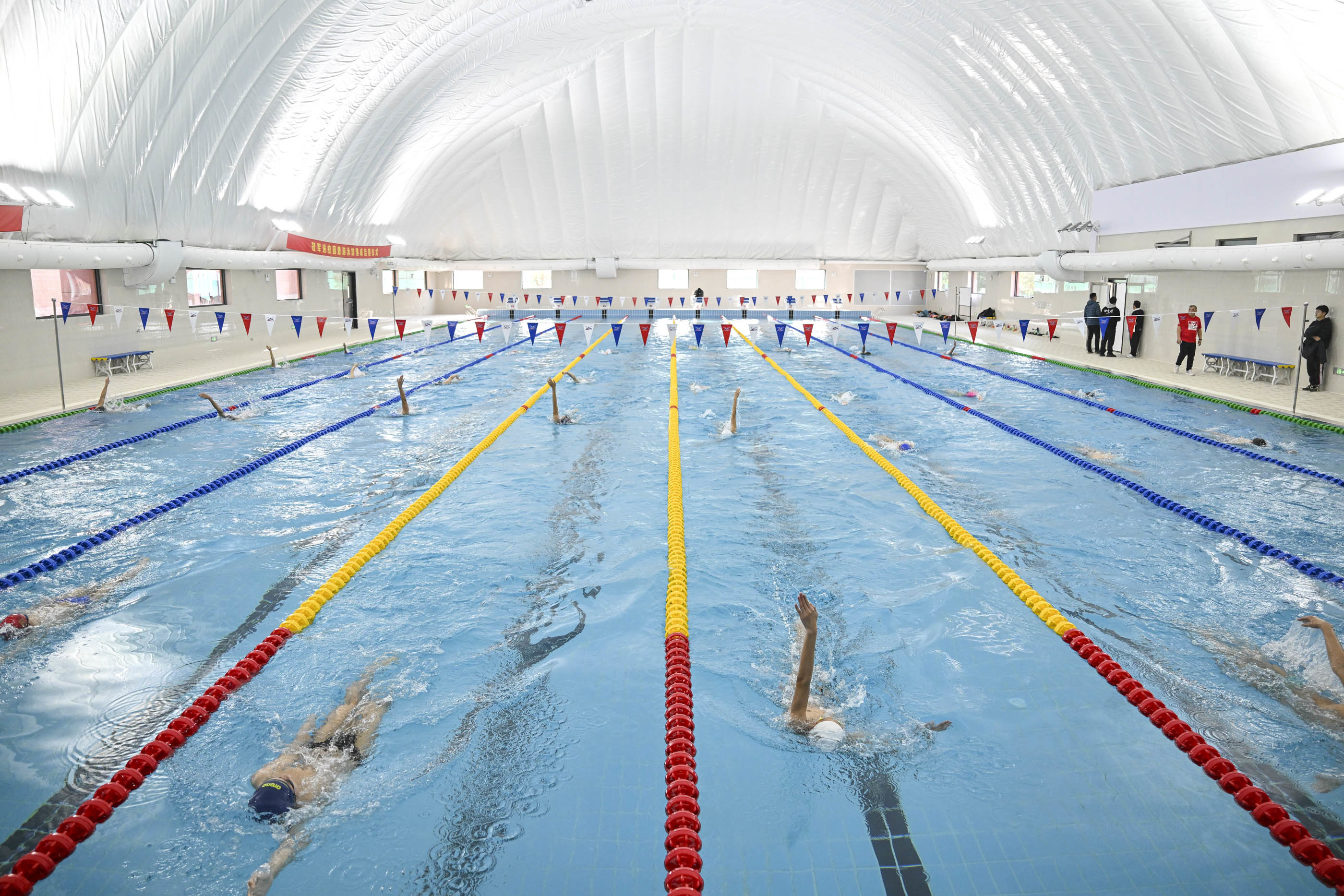 新落成的市体校气膜游泳馆主体采用先进的气膜技术和环保节能的材料,外立面呈抛物线造型,从泳池底部至气膜最高点15米。泳池长50米,宽21米,水深2.0米,设8条泳道。场馆兼具安全性、舒适性、耐久性和美观性。气膜游泳馆前身是50多年前由市体校师生人拉肩挑建造出的室外50米标准池,从简陋的室外游泳池到修葺一新的气膜游泳馆,为运动员提供了更优质的训练环境,为教练员提供了更完善的教学设施。