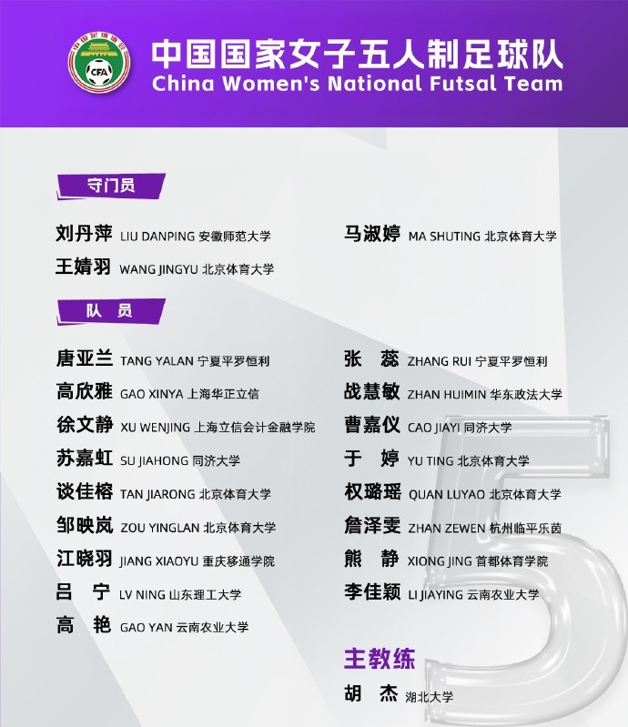 12月20日,中国足协公布了中国五人制女足的集训名单,一共20名球员入围。