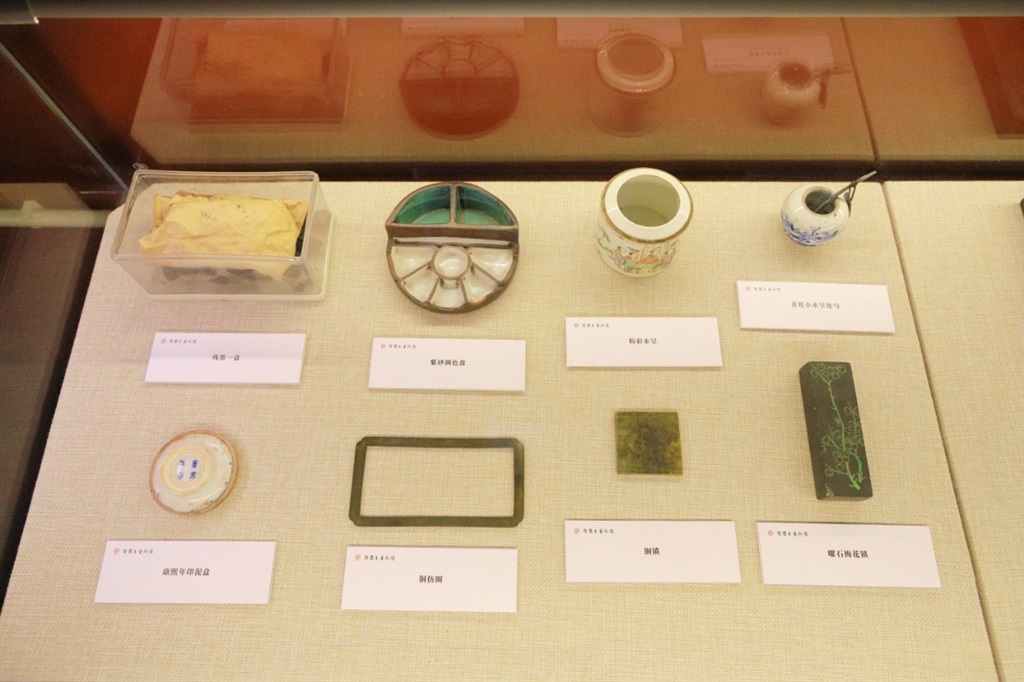 观众移步不同的展厅,不仅可以观看到相关历史文献、书法和金石篆刻方面的大量手稿、印章、作品,还可以亲眼目睹各类文具、工具及生活用品等,如袖珍日记、硬毛笔、测绘仪、红木榻、食笼等,以此打开全新的艺术“视界”。