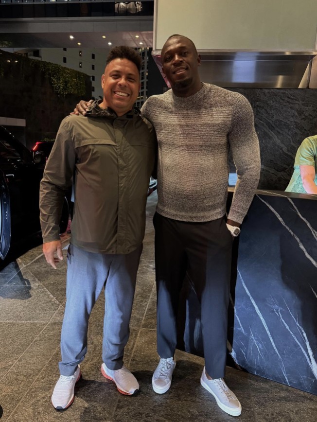 博尔特晒出了自己和大罗的合影,并写道:“将足球提升到另一个水平。”