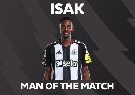 英超第17轮,纽卡斯尔联客场4-0大胜伊普斯维奇,此役上演帽子戏法的纽卡前锋伊萨克当选英超官方全场最佳球员。
