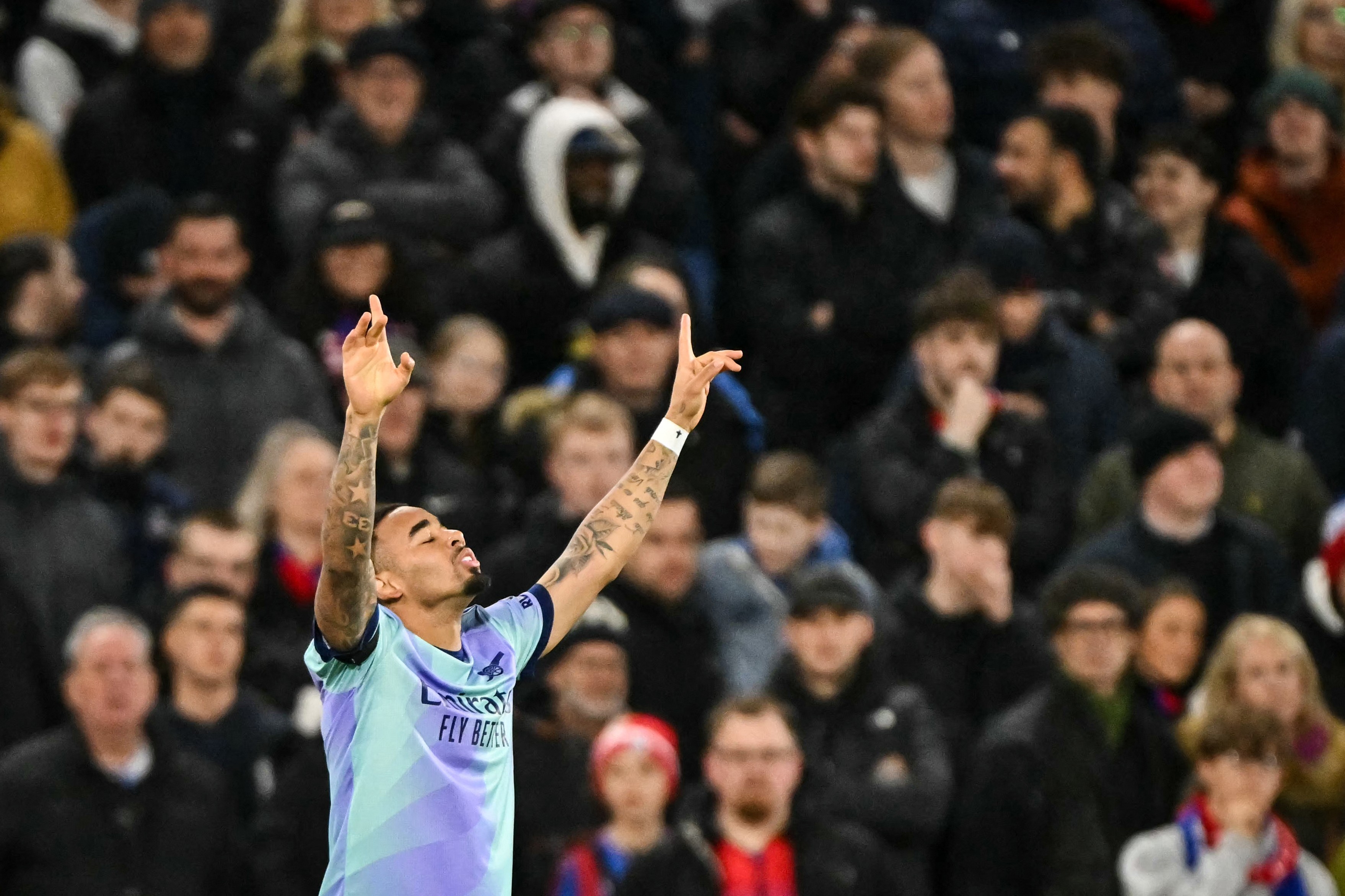 英超第17轮客场挑战水晶宫的比赛中,热苏斯的梅开二度帮助阿森纳取得2-1的领先。