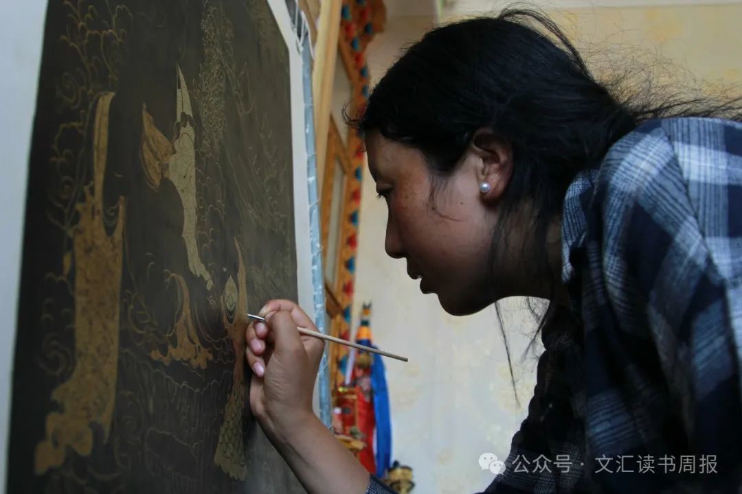 ▲正在绘制唐卡的热贡女画师伦措(本书作者摄于2018年)