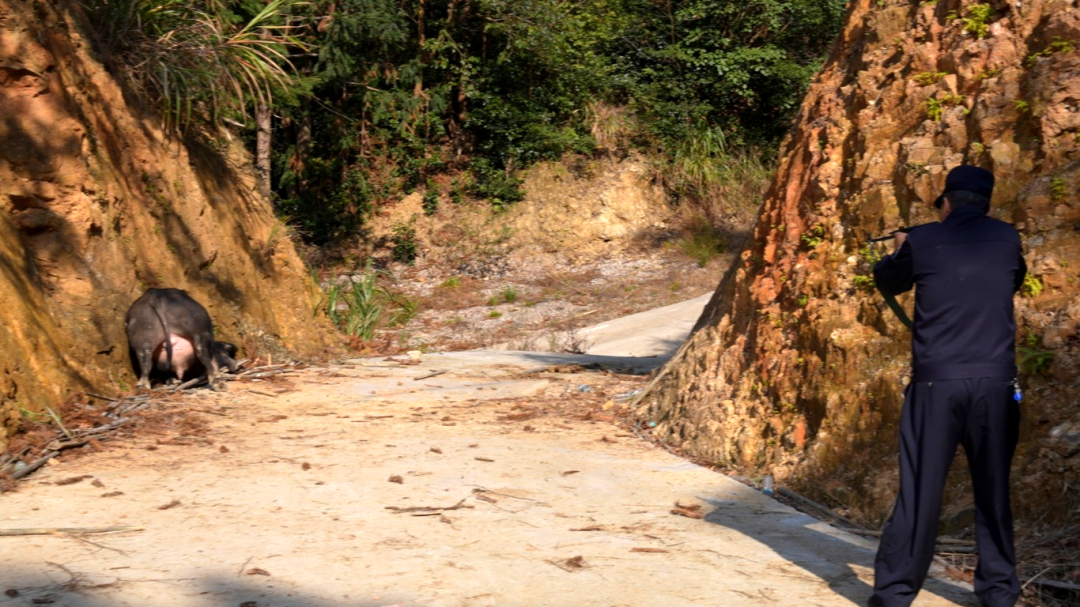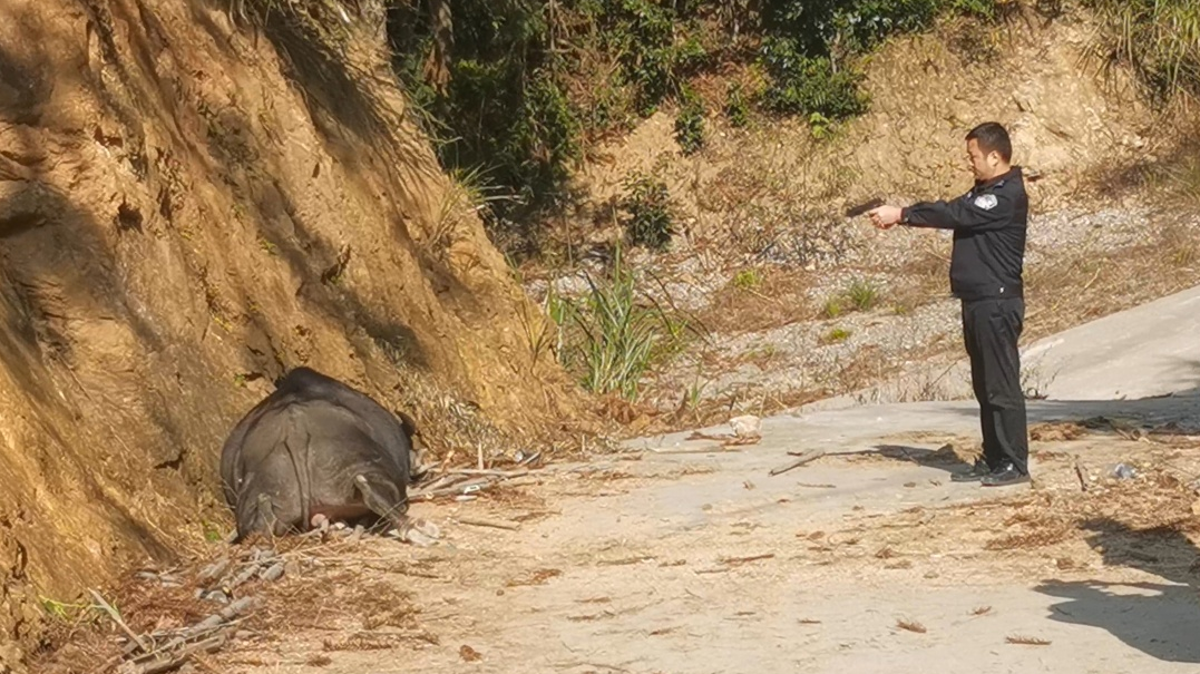 “疯牛”被击中要害应声倒地