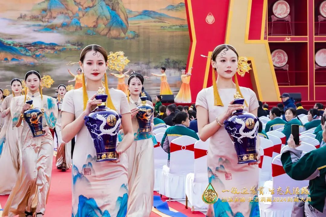 春酿、夏长、秋收、冬藏,师法天地,自然之酿。在热烈的掌声中,9坛迎驾贡酒2024年洞藏生态原酒被迎驾贡酒酿制技师团队抬上舞台。著名白酒专家、博士生导师、江南大学原副校长徐岩,中国酿酒大师、中国食品发酵工业研究院首席酿酒技术顾问、原副院长张五九,与迎驾贡酒酿酒大师团队的七位代表把迎驾美酒连同美好的祝愿、对未来的憧憬一起签名鉴证、封存。在洪亮的“起酒”声中,迎驾酿酒大师团队亲自护送9坛珍贵原酒进入清潭洞,以剐水行洗尘礼正式封藏入洞。