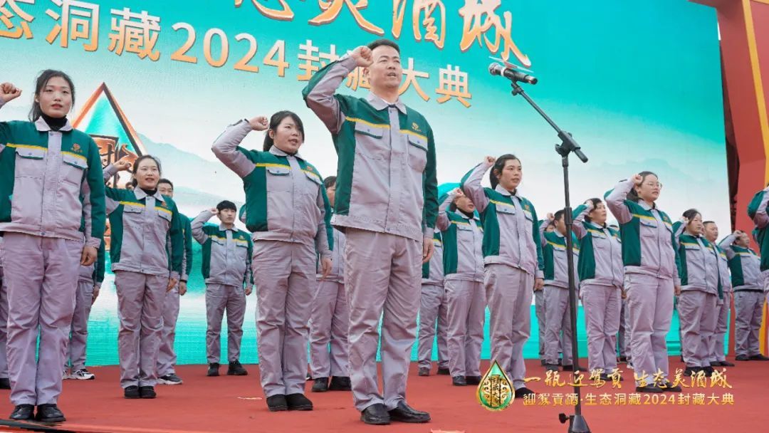来自酿酒一线的61名员工代表在沃土山水间庄严宣誓,生动展现了迎驾传统酿造技艺的薪火相传、生生不息。