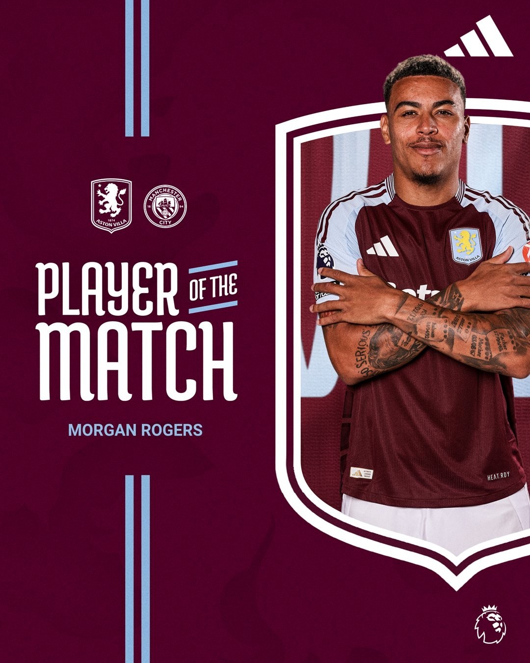 在昨天晚上进行的英超第17轮比赛中,阿斯顿维拉主场2-1击败曼城,其中摩根-罗杰斯传射建功,赛后,他被维拉官方评为本场比赛队内最佳球员。