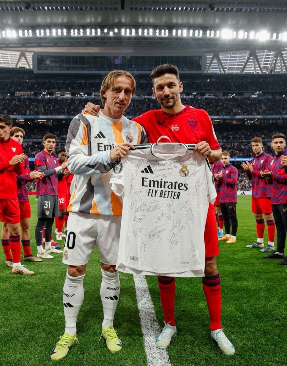 塞维利亚传奇赫苏斯-纳瓦斯在伯纳乌完成职业生涯最后一战,皇家马德里队长莫德里奇向他赠送了一件全队签名球衣。莫德里奇在社交媒体晒出两人举着球衣的合照,并送上祝福。