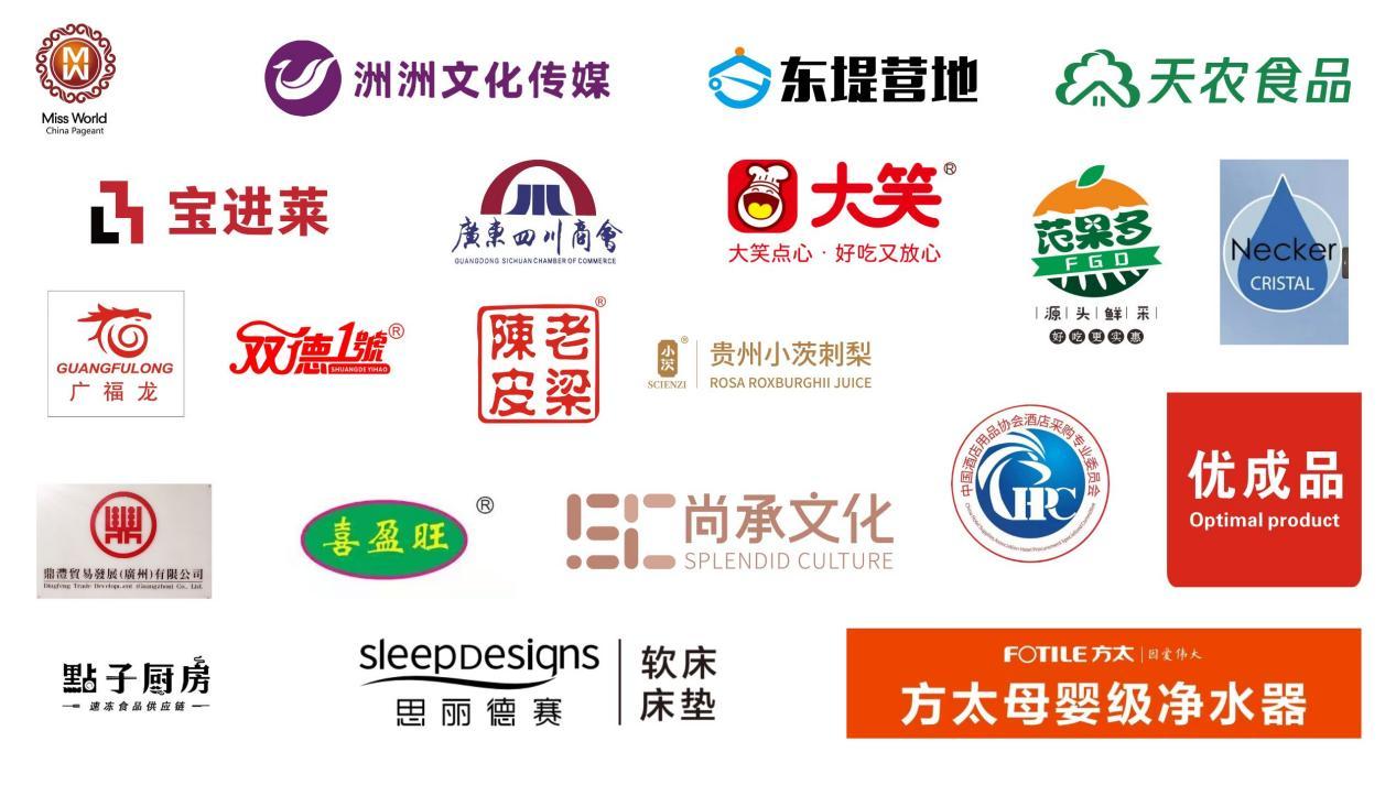 协办单位粤港澳大湾区国际汇聚区、广州逸林假日酒店·国际会议中心(王慧副总经理)为大赛提供了优质的场地和服务;尚承文化发展(广州)有限公司(范慧玲总董事长)、广州市竹溪饮食集团(胡志伟董事长)等在文化活动和餐饮服务方面给予了大力支持。广州市波色子科技有限公司莎菲诗SHAFEISHI护肤品牌、贵州小茨生物科技有限公司(梁家耀)、广州悟空文化传播有限公司(陈晓丽董事长)、广州光灿贸易有限公司(段玉华董事长)、广州丰汇食品有限公司(马晓东董事长)、广州市饮台酒业有限公司(罗月爱董事长)、中国酒店用品协会酒店采购专业委员会(杨穗华)、广州市范果多贸易有限公司(马晓东董事长)、广州洛珀广告有限公司(梁家耀董事长)、沿途出行(黎友雄董事长)、广州市永达汽车用品有限公司(张杰辉总经理) 、广东中鹏化工有限公司(刘乃贤董事长)、广州卓越新零售科技有限公司(徐龙董事长)等也为佳丽们的美丽形象保驾护航。