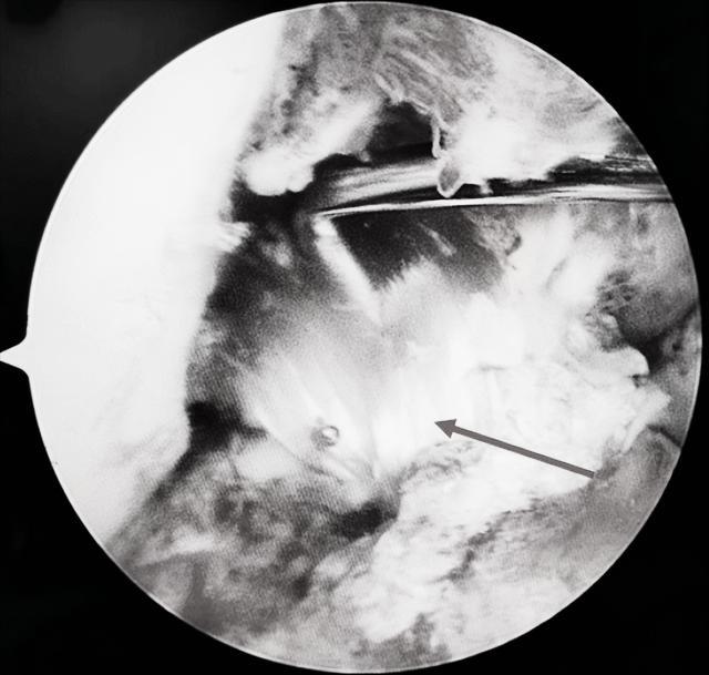肖勇医师带领运动医学团队成功为患者实施了膝关节镜下前交叉人工韧带重建术。术中关节镜下探查:前交叉韧带完全断裂。在关节镜下引导,精准建立股骨胫骨隧道,引入直径7.5毫米人工韧带,镜下调节韧带张力,予以钛合金挤压钉固定人工韧带两端,手术仅仅通过三处不足2厘米的切口就恢复了膝关节的稳定性。