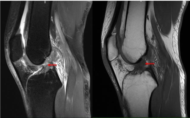 (MRI示:膝关节交叉韧带损伤)