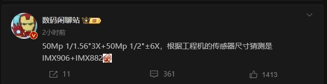 据博主@数码闲聊站爆料,OPPO Find X8 Ultra 将搭载 1/1.56 英寸的 3 倍+1/2 英寸的 6 倍潜望长焦,两颗镜头均为 5000 万像素,与之对应的传感器应该为 IMX906 和 IMX882,同时它还会加入更多源自哈苏相机的特性。