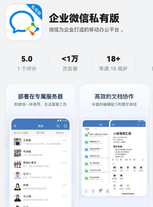 官方信息显示,企业微信私有版是腾讯企业微信团队在原企业微信基础上,为大型企业提供的智慧办公私有化解决方案。企业微信私有版重点解决大型企业内部移动办公、即时沟通远程音视频会议、一体化办公等问题,提升办公效率。