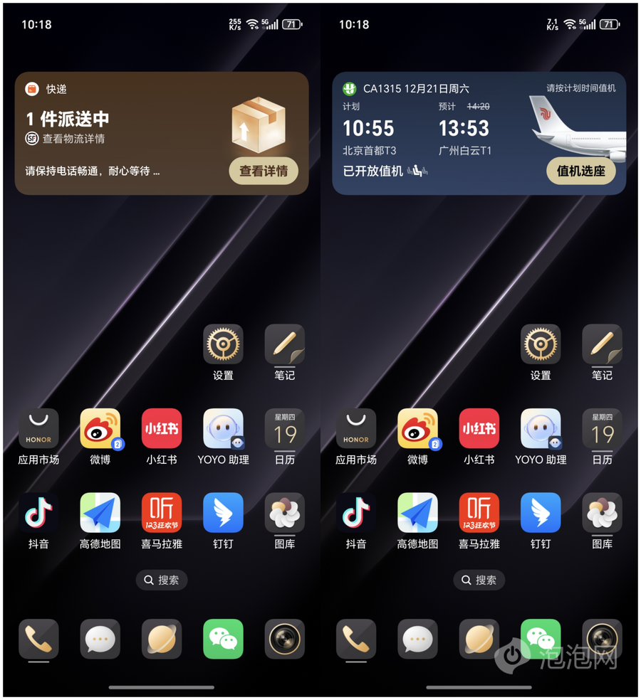 当你有航班信息或者快递信息的时候,YOYO建议也会给出提醒,让用户可以第—时间知晓,避免错过重要信息。