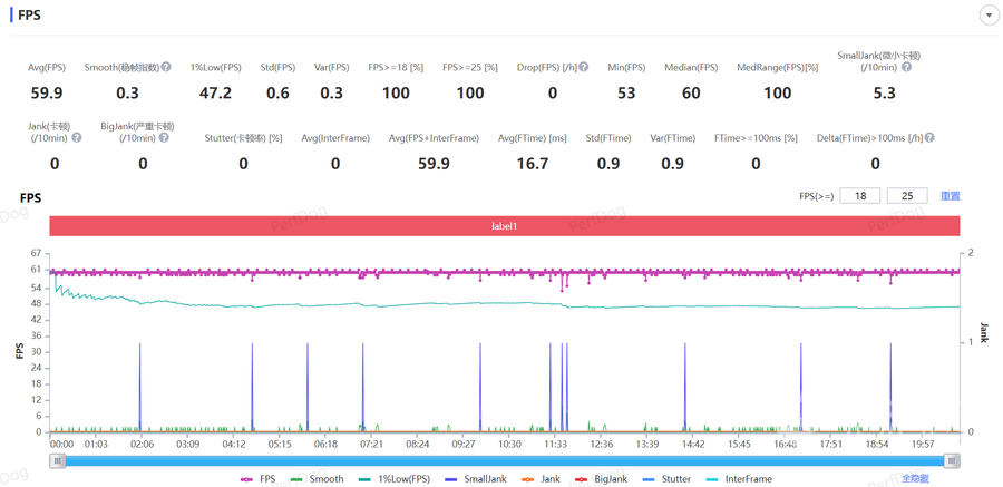 而在《原神》游戏中,荣耀Magic7 RSR保时捷设计在开启高画质和60帧的设置下,采用须弥城进行跑图进行测试,通过PerfDog监测到的平均帧率达到了59.9FPS,运行同样流畅。