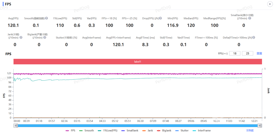在游戏测试中,《王者荣耀》可以支持120帧的游戏模式,在极高帧率和超分辨率的设置下,通过PerrDog进行测试,荣耀Magic7 RSR保时捷设计的平均帧率为120.1FPS,达到了满帧运行体验。