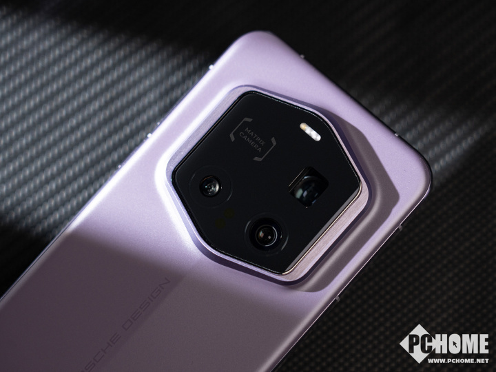 镜头模组内部,荣耀Magic7 RSR 保时捷设计的三颗摄像头以及一个影像图标呈矩形均匀排布,仿佛保时捷经典的四点式头灯排布,赋予这款手机无与伦比的动态美学和先锋潮流体验。