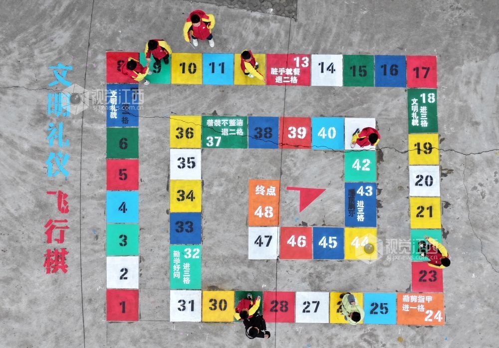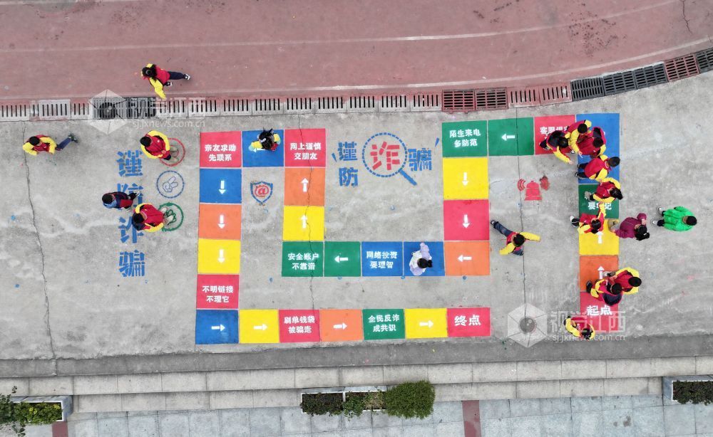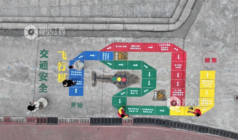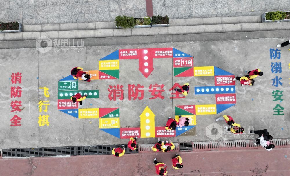2024年12月23日,在江西省永丰县恩江小学,学生们正在彩绘“地面游戏”上玩耍。为丰富学生课间生活,最大限度挖掘学校活动资源,江西省永丰县将有趣的传统游戏“画”引进校园,巧妙融合消防安全、防溺水等知识,让孩子们在寓教于乐的过程中,增强安全意识和自我保护能力,为安全教育开辟了新的途径和方式。
