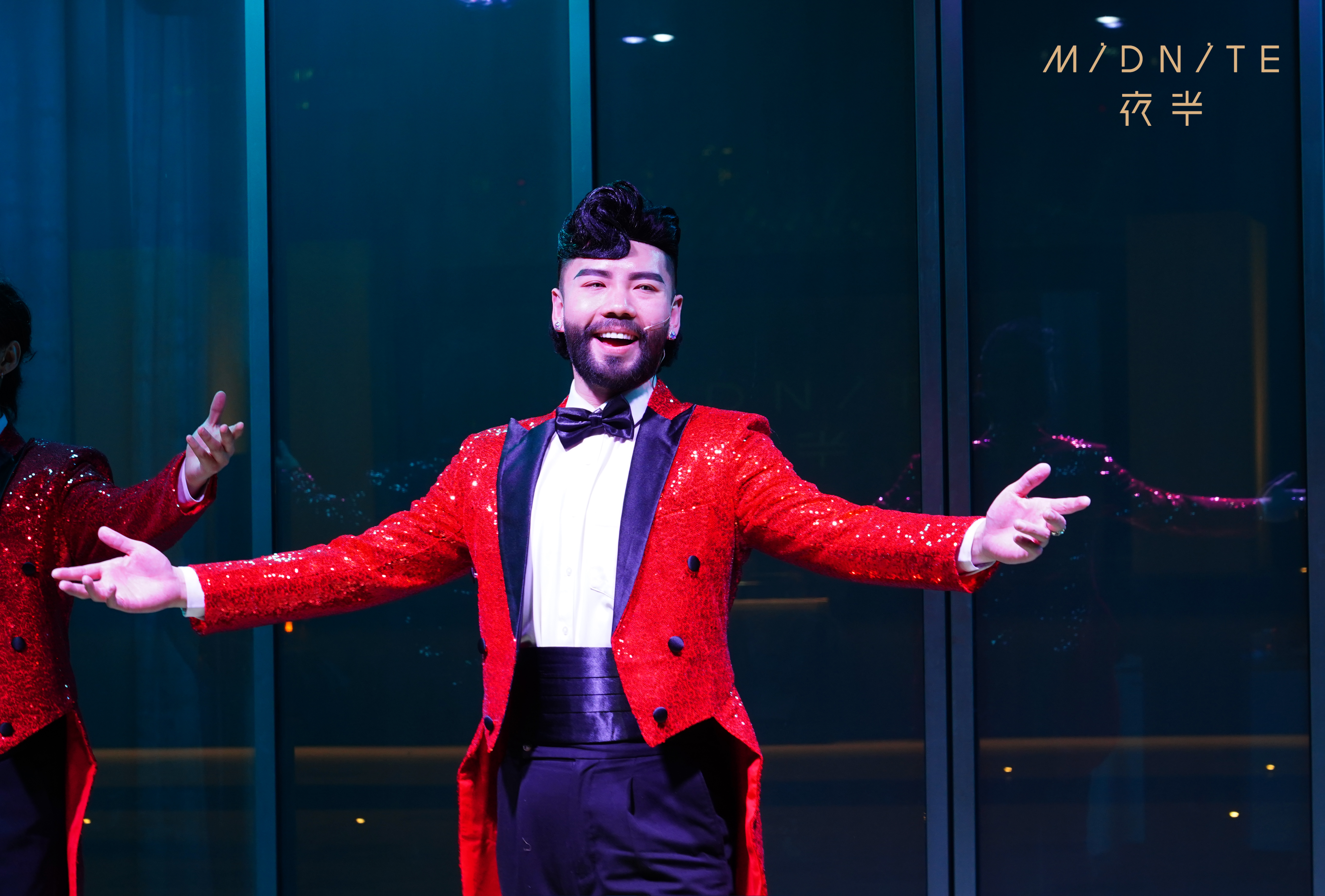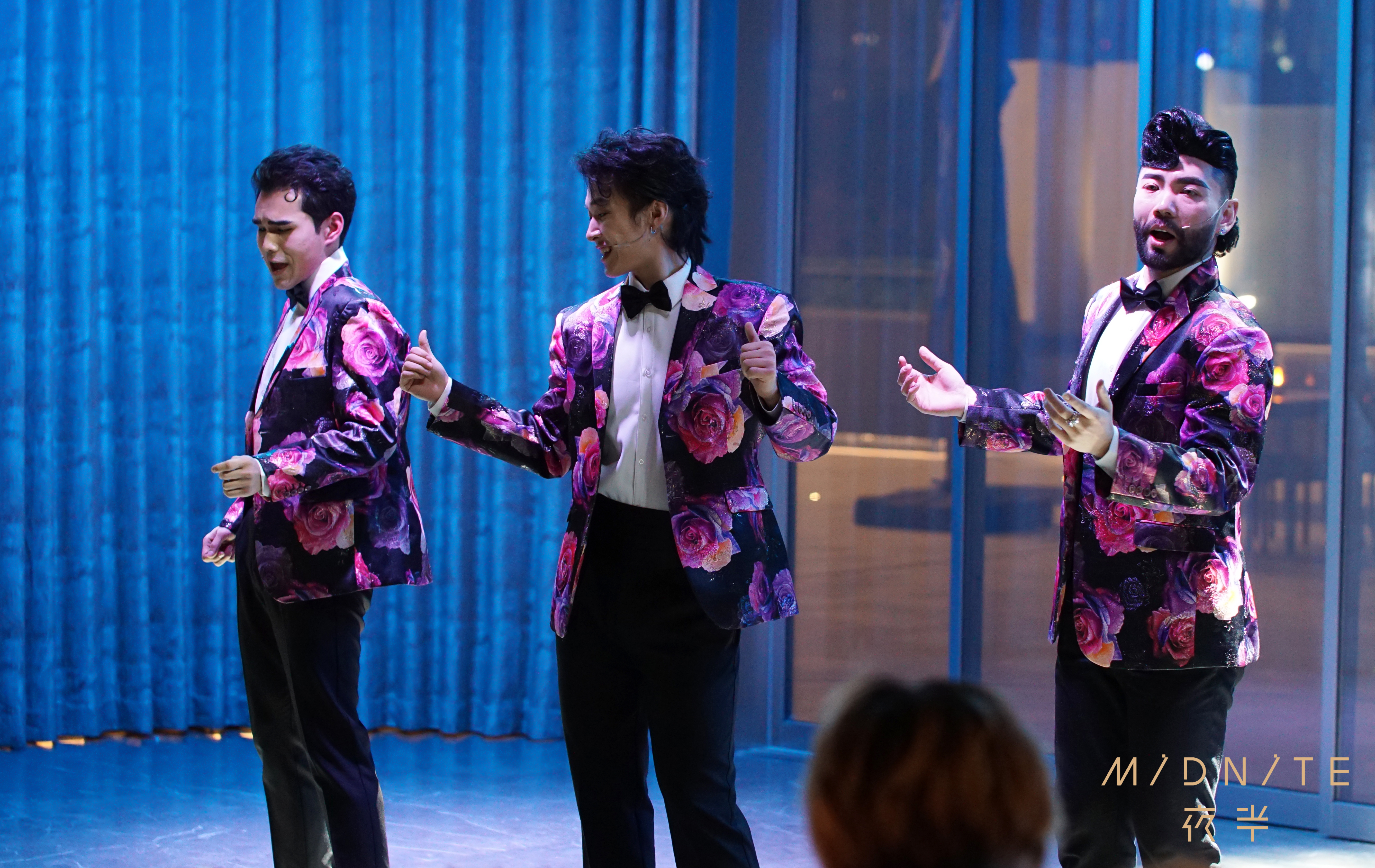 此次餐秀,夜半携手知名音乐剧演员翟李朔天担任总导演并出演,年蔓婷、舒杨等10位音乐剧演员联袂亮相夜半舞台,共同演绎多首经典歌曲,在现代都市氛围与数字光影艺术的交融下,以热情洋溢的歌舞让时光流转,带现场观众回到摩登年代。不同于在剧场空间呈现一场演出,演员们穿行于大厅舞台与餐位之间,观众在享用美食的同时,可以欣赏超近距离的互动式和沉浸式表演。