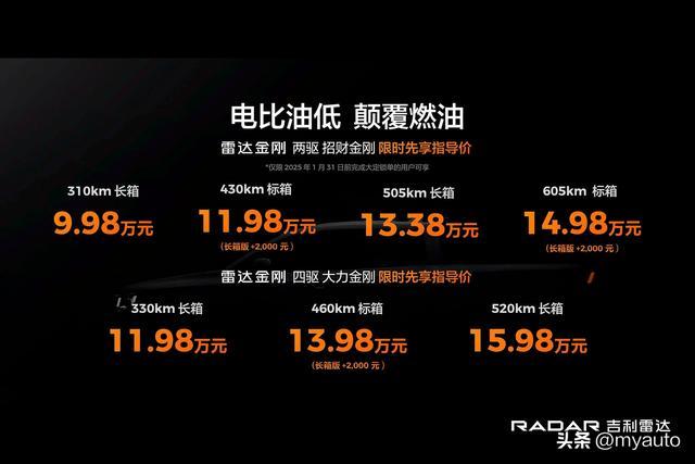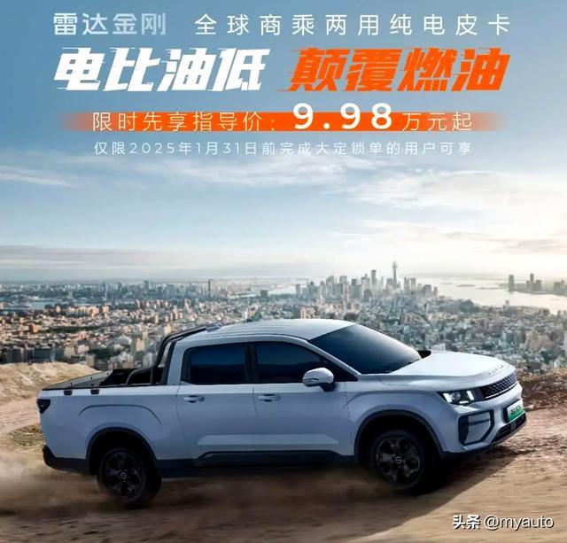 你有没有发现在这个乘用车甚至货车都绿牌遍地的时代,挂蓝牌的皮卡车一直很少。MYUATO认为最关键的原因还是能挂绿牌的皮卡价格太贵了。而吉利雷达金刚皮卡上市,将起步价定在了9.98万元,跟最近挺火的奇瑞 iCAR V23一个价,最关键的是它的入门级四驱版本起步价比奇瑞 iCAR V23还要便宜拿这样的车来玩的话,那不比奇瑞 iCAR V23香多了?