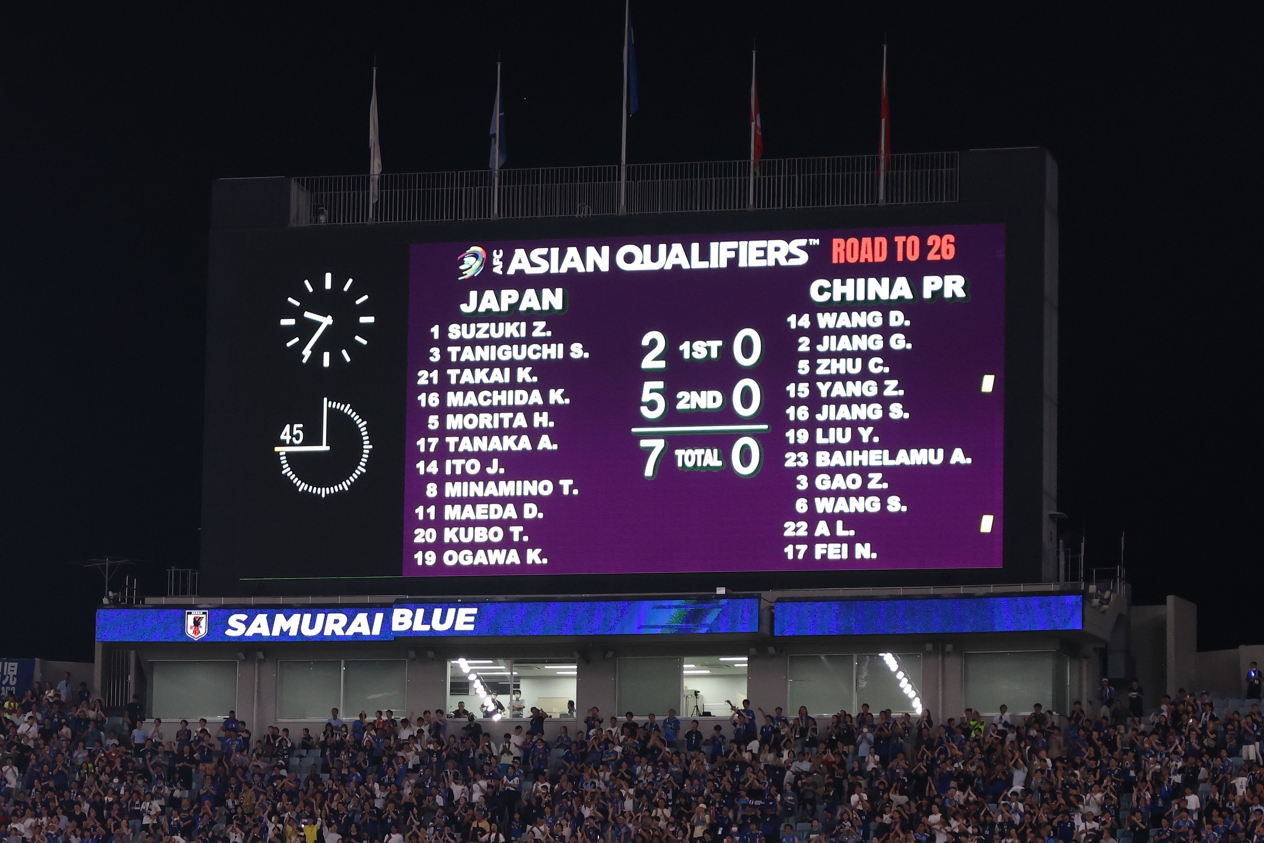 在跌跌撞撞闯入到十八强赛后,国足迎来了属于自己的“世界杯”。首战日本队,中国球迷自知难逃败绩,但结果依然让人大跌眼镜,半场0-2还在预料之内,但接下来,0-3,0-4,0-5,0-6......第95分钟,久保健英的一脚爆射,将比分定格在7-0!国足遭遇了正式比赛历史最惨一败,0-7的比分牌成为了挥之不去的阴影。