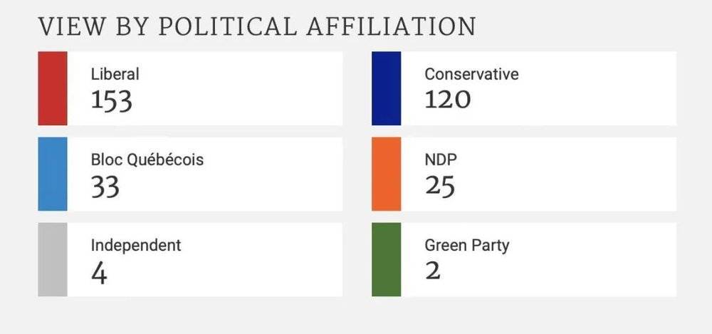 ◆加拿大众议院政党席次。图源: House of Commons Canada