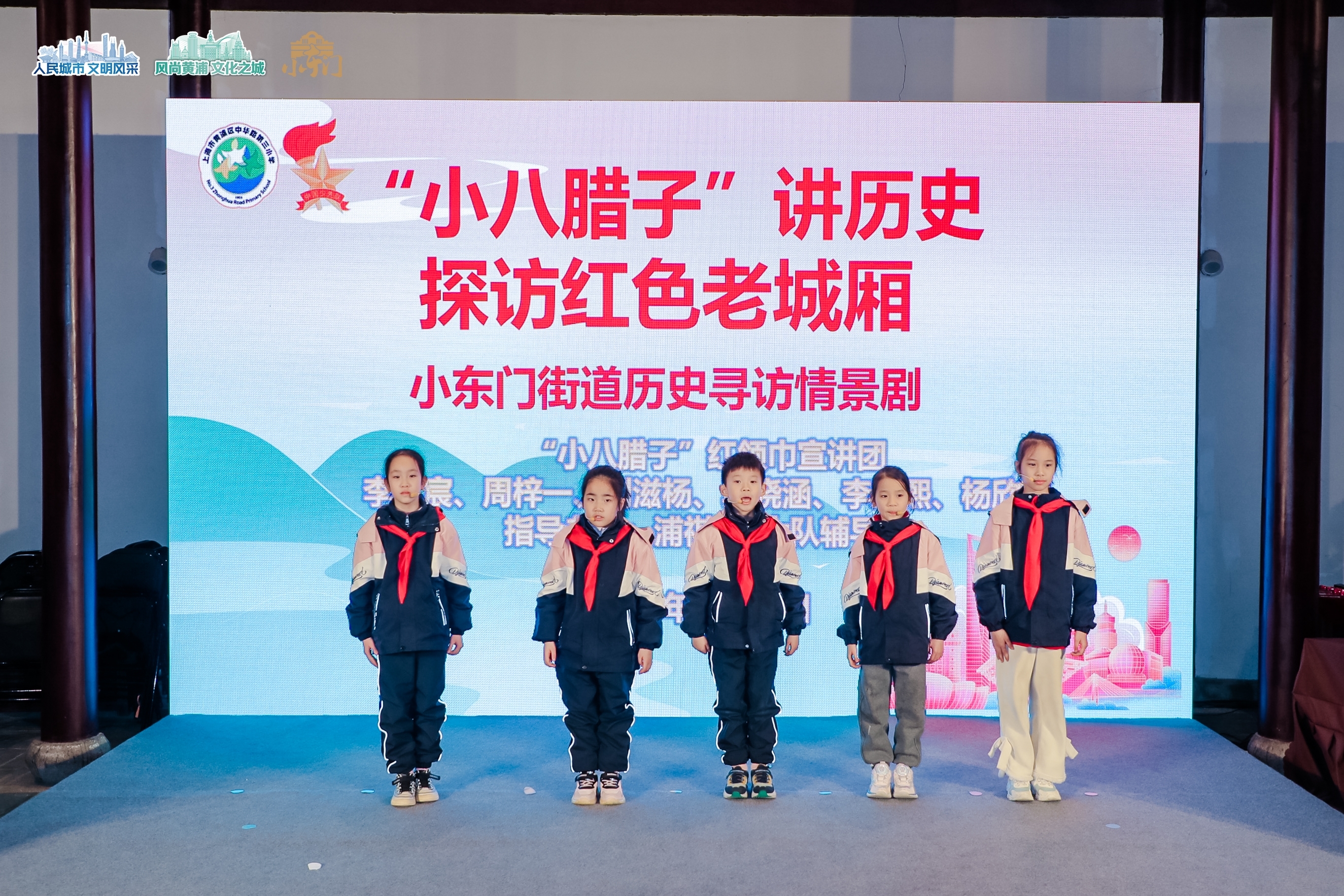 近年来,街道深挖辖区红色资源,开发“水陆联动实景课件”,让每一位东门人都成为南外滩的历史文化故事和发展历程的宣讲员,其中就有一支由街道和中华路第三小学共同打造的“小八腊子”红领巾宣讲团。他们利用课余时间,探寻街道红色老城厢历史,这段红色记忆,也是小东门街道人民城市实践的重要精神源泉。