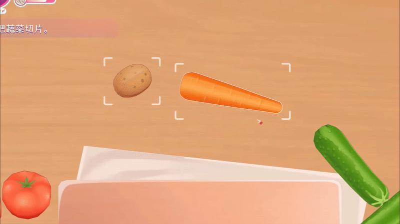 进入游戏世界后切胡萝卜,玩家便无需再点击,直接让鼠标上下移动就可以切了。此时鼠标模拟的就是真实的切菜动作,而玩家由始至终都很好地代入了男主的处境。