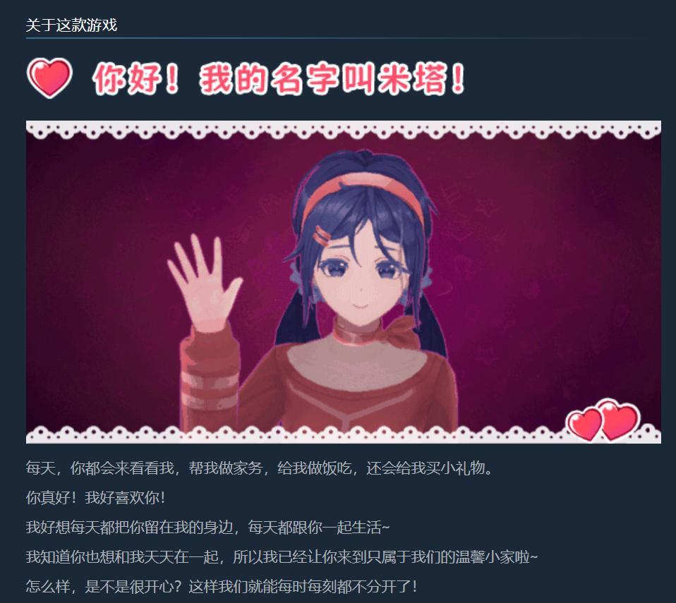 《米塔》与游戏里的米塔均擅于“伪装”。玩家在Steam的宣传图和玩法介绍中几乎看不出任何恐怖元素的踪影。穿越到游戏中,与喜欢你的美少女一起享受同居生活?听起来就像是宅宅们玩Galgame的最终幻想。