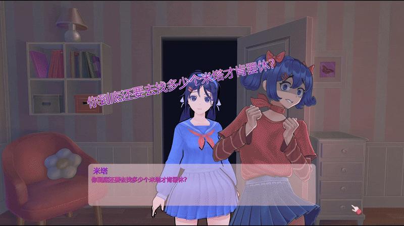 你还会遇到一位奇怪的眼镜米塔。她自称“米拉”,一身文学少女打扮,却有着独特的个性追求。她不愿将自己与其他米塔混为一谈,在小小的房间里读书上网,学习着游戏世界里用不到的现实知识,并对此表现出无限向往。玩家的出现让她按捺不住内心的狂喜,她竭尽全力展现自己的魅力,最后却只能在啜泣中与你诀别。