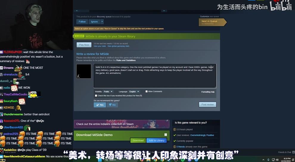 (头部主播xQc高度称赞《米塔》)