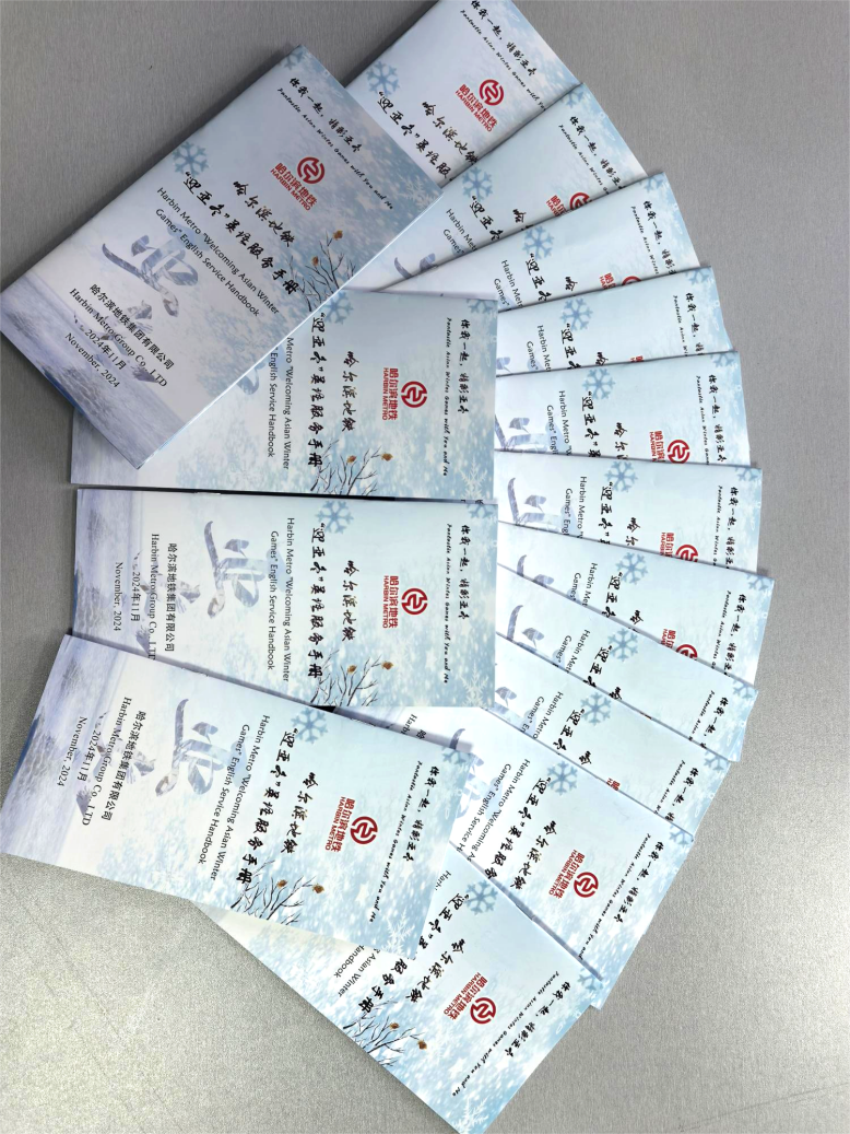 为提升地铁员工的服务水平,哈尔滨地铁集团组织线网各车站站务、安检、安保、物业、工班、志愿者等3000余人进行英语服务用语培训,积极引导广大地铁员工在保障冰雪季及亚冬会期间自觉用英语、说英语,以最好状态、最优素质、最美风尚,为中外游客提供热情周到的服务。同时,编写《迎亚冬英语服务手册》,将亚冬会的相关术语和知识常识表达翻译成英语,涵盖哈尔滨城市简介、地铁全线车站英文名称、购票流程、扫码线上支付、自动购票机现金支付、安检注意事项等实用信息。
