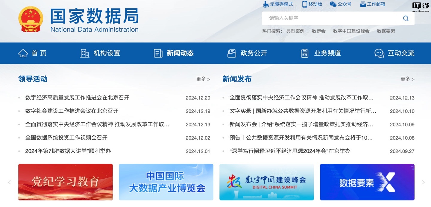 国家数据局官方网站现已上线试运行,官网地址为 网站开设了机构设置、新闻动态、政务公开、业务频道、互动交流等栏目,网站提供了无障碍模式,允许朗读网站上的各种文字内容。