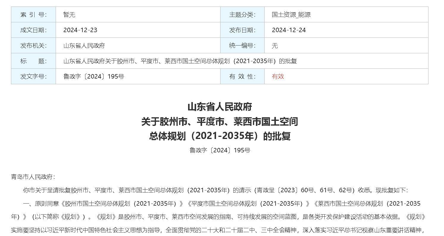 近日,山东省人民政府正式批复了《胶州市国土空间总体规划(2021-2035年)》《平度市国土空间总体规划(2021-2035年)》和《莱西市国土空间总体规划(2021-2035年)》。这一重要批复为三个市未来的发展指明了方向,并提供了全局性的安排。批复指出,这三个规划是各市空间发展的指南和可持续发展的空间蓝图,是各类开发保护建设活动的基本依据,着力将胶州市建成北方重要的国际交往门户、山东半岛先进制造业基地、青岛市副中心;将平度市建成青岛都市圈综合性节点城市、重要的先进制造业与现代农业基地、山水田园宜居城市;将莱西市建成青岛都市圈综合性节点城市、战略性新兴产业基地、生态休闲宜居城市。