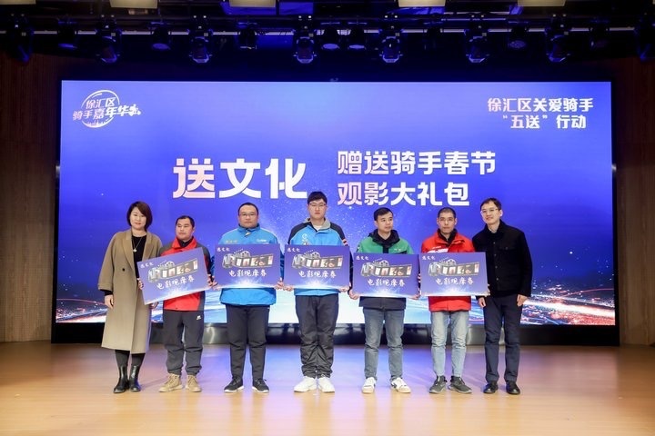 朱伟红与骑手代表共同启动“骑手嘉年华”,徐汇区为新就业形态劳动者的“法治护航”“安居乐业”“餐食无忧”“安康守护”“稳岗赋能”“文化关爱”“温情助力”等七大服务行动也正式启动。