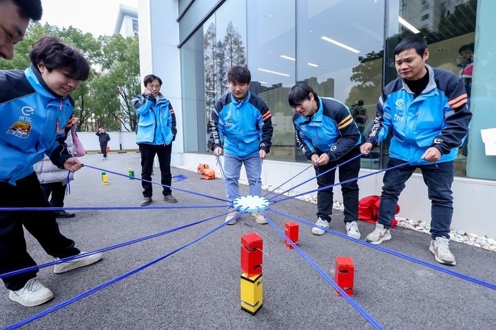 嘉年华的实体活动精彩多样、看点十足,让500位骑手们流连忘返。免费健康体检为骑手们的健康保驾护航,让他们在忙碌的工作之余,能够及时了解并关注自己的身体状况;法律咨询服务台前人来人往,专业律师耐心解答骑手们在工作与生活中遇到的法律问题;趣味运动会团体赛上,8队骑手们奋力争先,合作共进,增强了团队凝聚力;现场“幸福直通车”为骑手们提供实惠的商品,满足日常需求;“带副春联回家乡”让骑手们提前拿到了书法家现场撰写的福字、春联,提前收到了福气满溢的专属春节祝福;扫码入会便捷高效,吸引更多骑手加入工会大家庭;交通安全宣传则进一步提升了骑手们的安全意识,确保他们在配送路上平安出行;趣味体育项目打卡体验,让骑手们在投篮、飞镖、投壶、迷你高尔夫等游戏中放松心情、回味童趣、收获快乐。