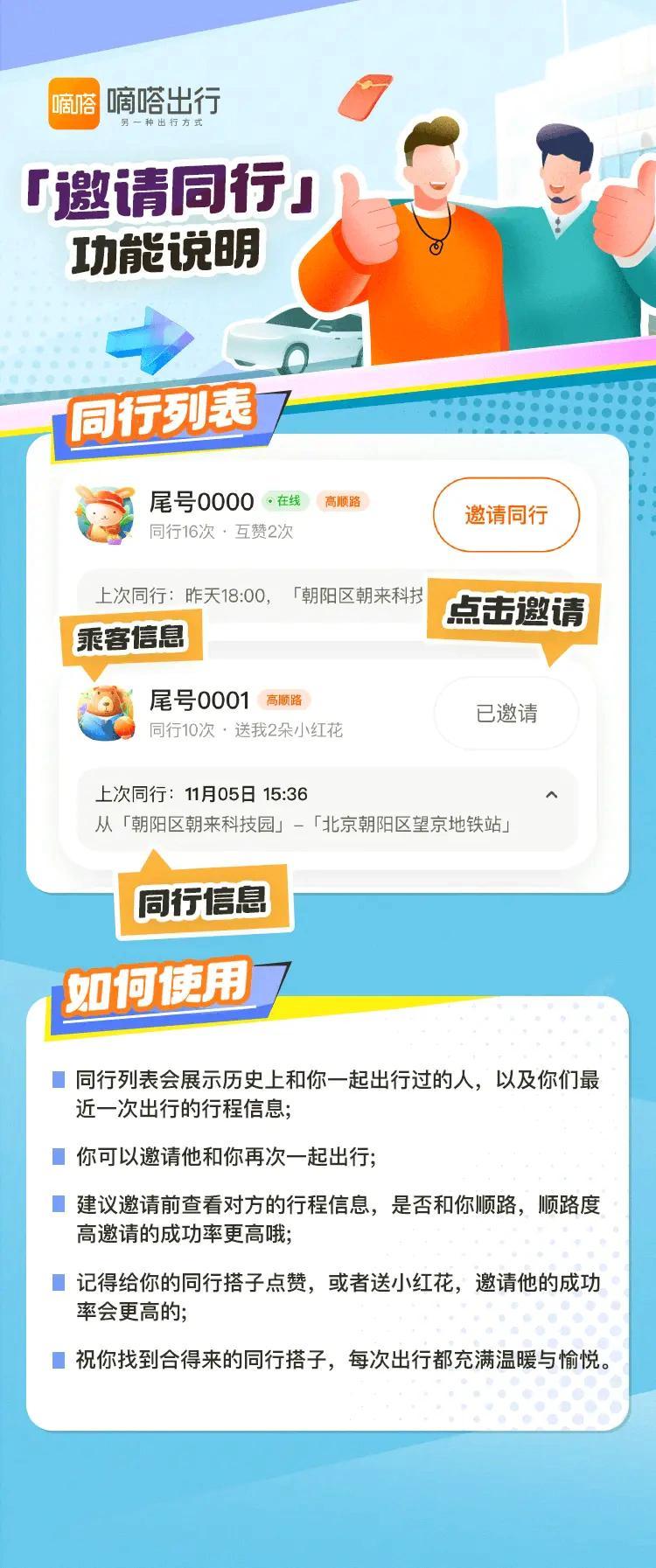 顺风出行,如何更方便地与同行过的同路人再次同行呢?近日,嘀嗒出行推出全新的再次“同行邀请“功能,让曾同行过的车主乘客,下次同行更方便,可以结成“同行搭子”。同时,嘀嗒出行还公布了“半熟人产品”矩阵最新进展。