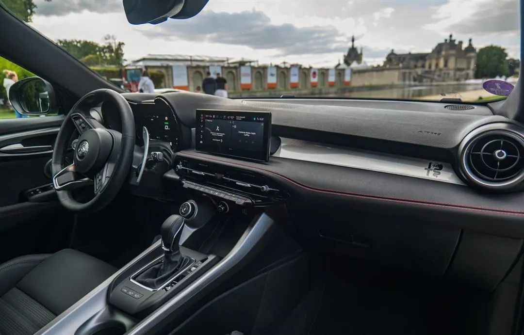 设计风格上高度融合了阿尔法·罗密欧经典的家族式设计语言,前脸采用品牌标志性的倒三角形前格栅,格栅内部搭配黑色蜂窝中网。大灯依旧非常纤细伶俐,侧面的牌照架设计很容易让人一眼辨别出这是一台阿尔法·罗密欧。但这样的设计出入一些停车场没那么方便,不是很好录入车牌信息。