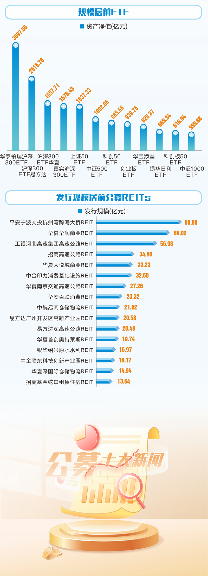 而且,今年宽基ETF爆款频出,以华泰柏瑞沪深300ETF为代表的核心宽基ETF规模持续突破历史纪录,华泰柏瑞沪深300ETF规模一度突破4000亿元。ETF千亿规模俱乐部不断壮大,目前已有6只ETF产品规模超过1000亿元。