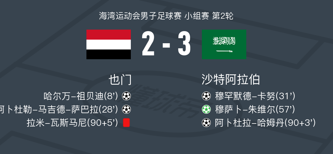 第8分钟,也门球员阿卜杜勒瓦西阿-马塔里助攻哈尔万-祖贝迪打入一球。
