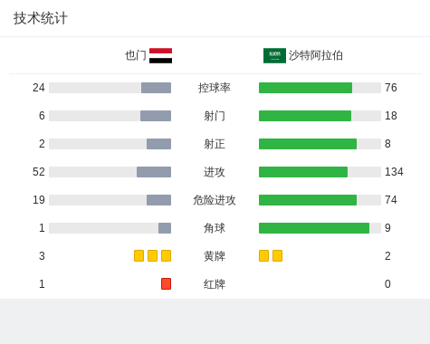 下半场补时第5分钟,也门球队拉米-瓦斯马尼吃到红牌。