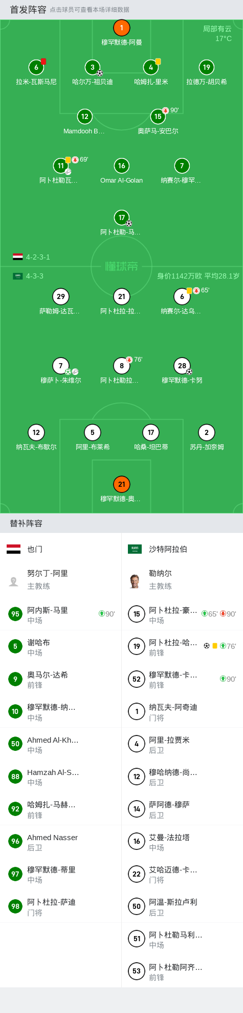 第31分钟,沙特阿拉伯球员穆萨卜-朱维尔助攻穆罕默德-卡努打入一球。