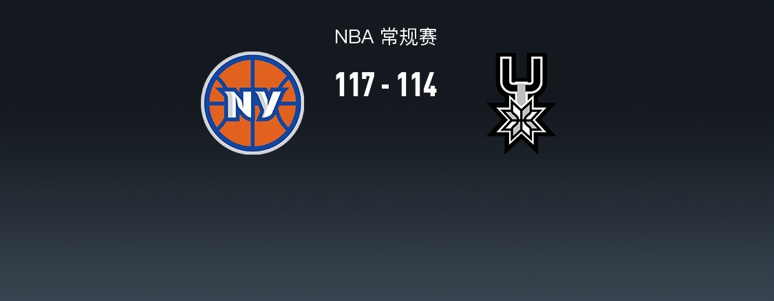 第四节尼克斯米卡尔-布里奇斯拿下15分,马刺文班亚马拿下11分,最终尼克斯117-114战胜马刺