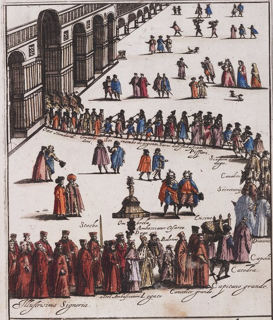 当时的威尼斯共和国,会周期抽选年轻贵族进入大议会。而且一次只从20-25岁的年轻中抽选30人左右。通常是将用于抽签的金球和白球放在瓮里,再把参与抽签者的名片卡放在另一个瓮里。然后请抽签人随机拿球,只有当抽签人抽到金球时,才有机会成为新的大议会成员,也就等于是半个官员了。