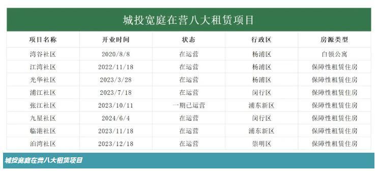 城投宽庭深耕保租房领域,已入市项目中除最先开发的湾谷社区,其他七个租赁社区属于保租房项目,落地上海各类战略新兴产业及城市发展重点区域,保障高新产业、服务文化创意产业等区域人才安居。同时,城投宽庭九星社区推出“新时代城市建设者管理者之家”,为城市建设者提供100张床位,月均租金不到1000元,为不同群体提供安居之“家”。