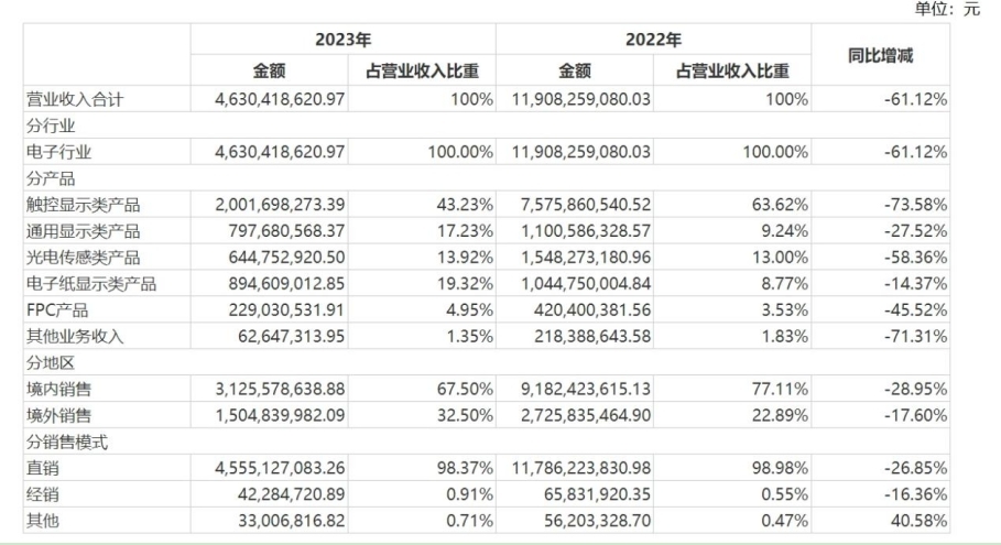 然而,近年来公司触控显示类产品、光电传感类产品的营收规模总体减少,业务重心逐渐向电子纸显示类产品和通用显示类产品倾斜,尤其是在2023年。