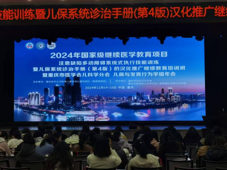 为推进注意缺陷多动障碍(ADHD)、语言障碍及相关发育障碍的规范 化诊疗,提升儿科医生、心理治疗师和心理咨询师的理论与实践水平,由中华医学会儿科学分会发育行为学组、重庆市妇幼卫生学会妇幼营养专业委员会等单位联合主办的《注意缺陷多动障碍诊治进展暨系统式儿童执行技能训练继续教育培训班(第一阶段)》暨《注意缺陷多动障碍儿保系统诊治手册(第4版)汉化推广与语言障碍诊治学习班》于2024年12月14-15日成功举办,众多业内专家受邀分享了国际国内的最新研究成果与临床实践心得。
