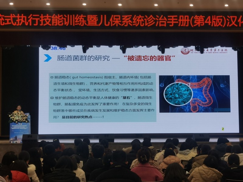来自河北医科大学第三医院的张琳教授带来了《肠道菌群稳态调控与儿童健康》的报告。她再次强调了肠道稳态在人体健康中的关键作用。她指出:“肠道稳态是宿主、肠道内环境 (包括肠道生境和微生物群)、营养和代谢产物等相互作用所构成的动态平衡状态,受环境、生活方式、饮食习惯等诸多因素影响,维护肠道稳态的动态平衡是人体健康的“基石”,其中,肠道微生物群、肠黏膜免疫对于维护肠道稳态的动态平衡发挥了重要作用。