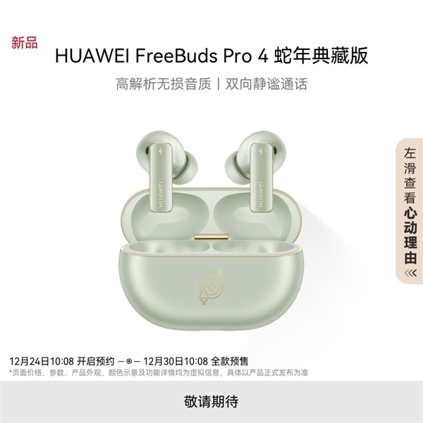 快科技12月26日消息,华为FreeBuds Pro 4蛇年典藏版已经在京东平台上架,目前尚未公布售价。